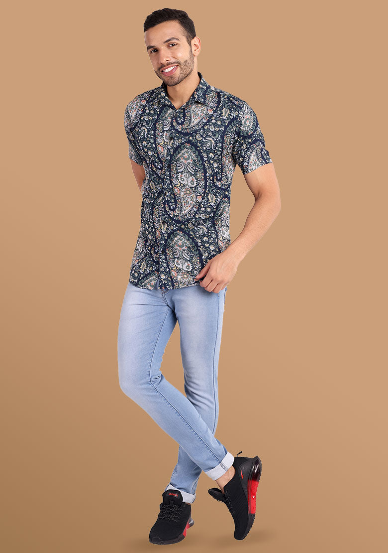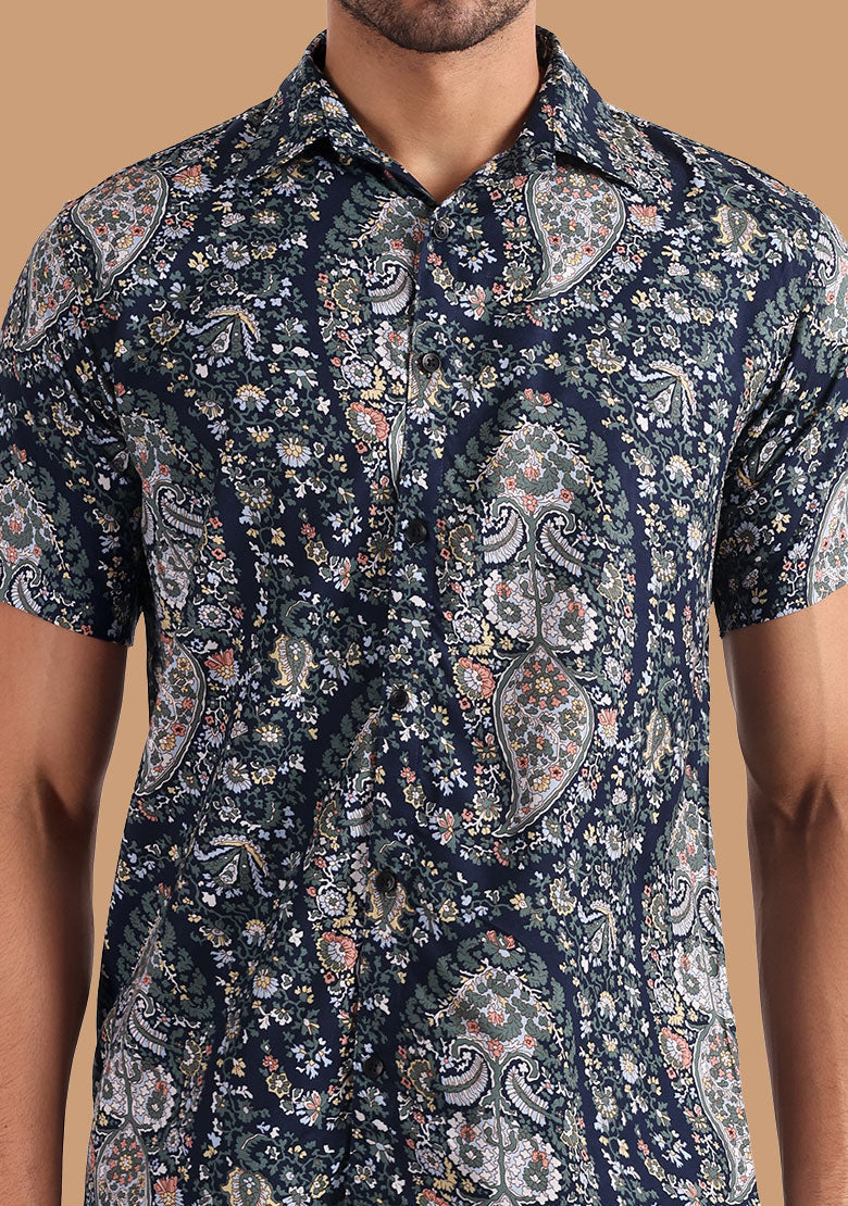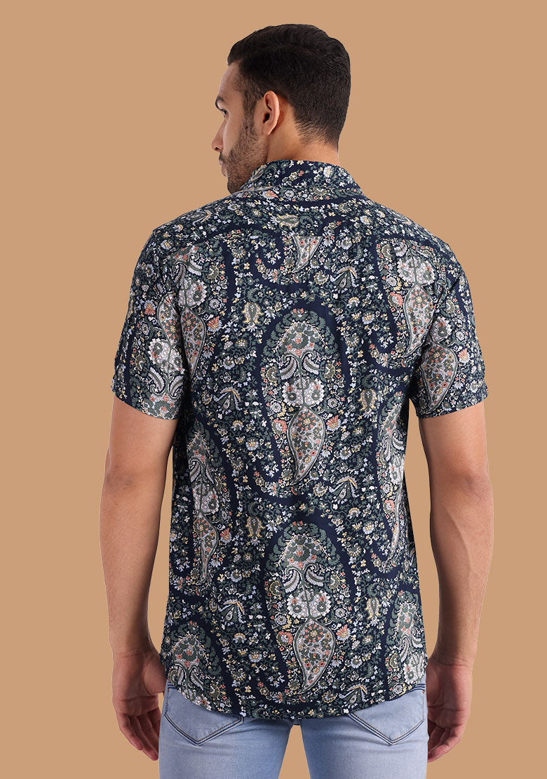 Made with high-quality viscose rayon, this shirt is designed for durability and comfort. To maintain its pristine condition, machine wash it with like colors in cold water, dry it in the shade, tumble dry on low, and iron the prints on the reverse side.