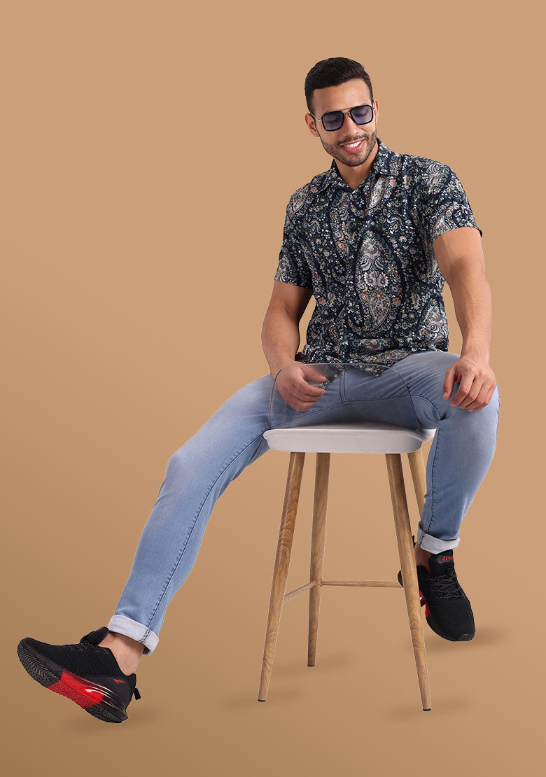 Introducing the all-new LENIA Printed Button-Up Shirt in classic blue! 💙Experience the perfect blend of style and comfort with this exquisite shirt. Here are the key details: