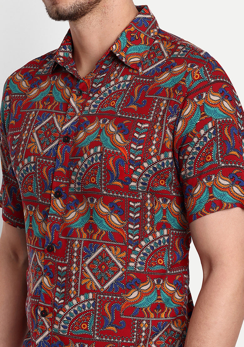 The shirt is made from high-quality viscose rayon fabric that is both lightweight and breathable, ensuring that you stay cool and comfortable all day long. The curved hemline adds a touch of modern style, making it perfect for pairing with slim-fit jeans, trousers, or chinos for a stylish and effortless look.