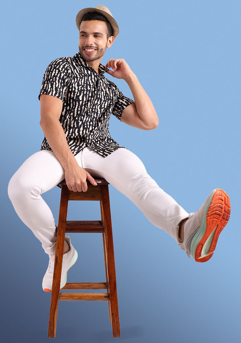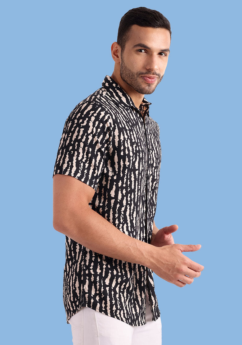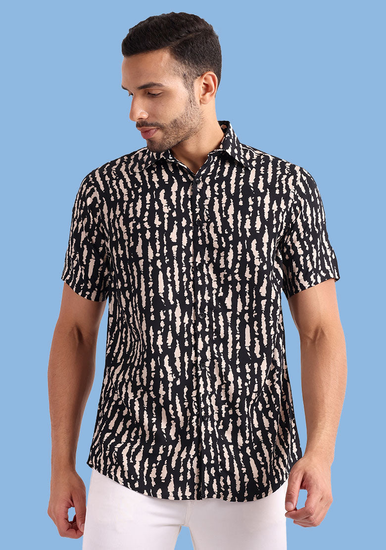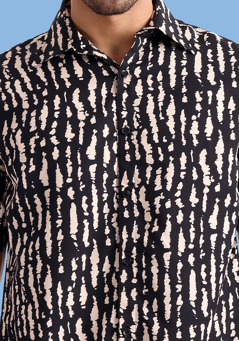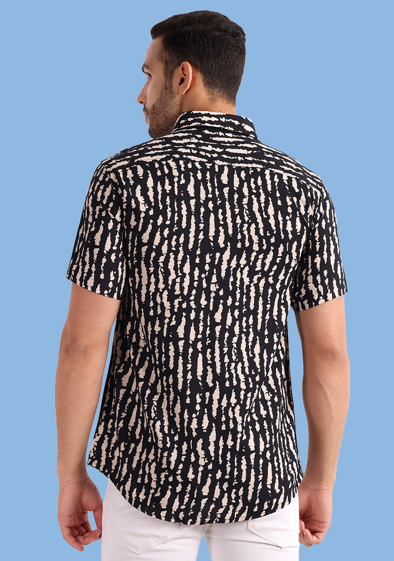 Introducing the all-new LENIA Printed Button-Up Shirt in classic black! Experience the perfect blend of style and comfort with this exquisite shirt. Here are the key details: