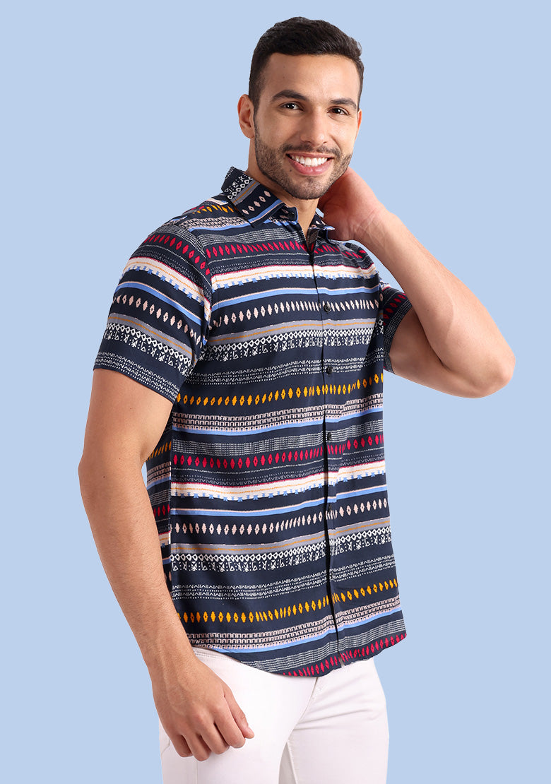 This printed shirt is perfect for casual occasions, providing both style and comfort. It's suitable for various summer events and ensures a cool and airy feel throughout the day. Stay effortlessly fashionable wherever you go.