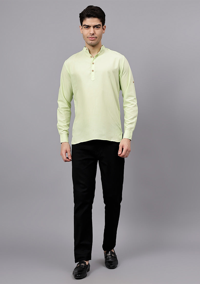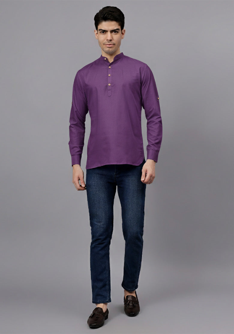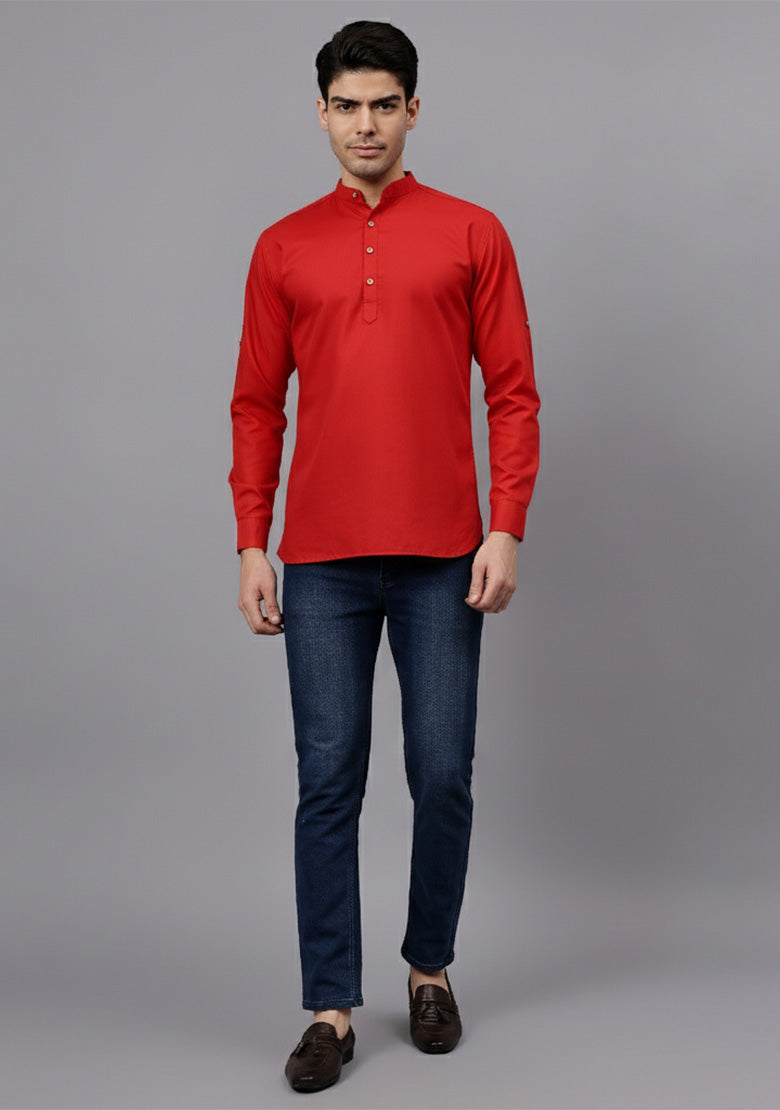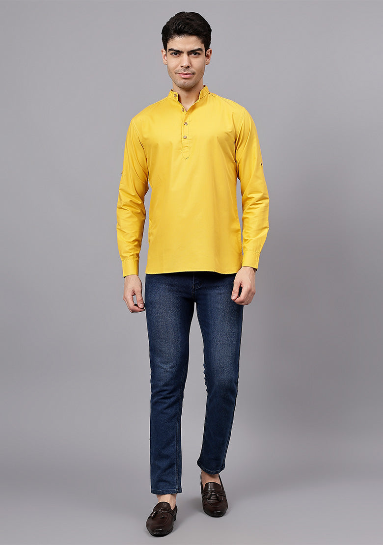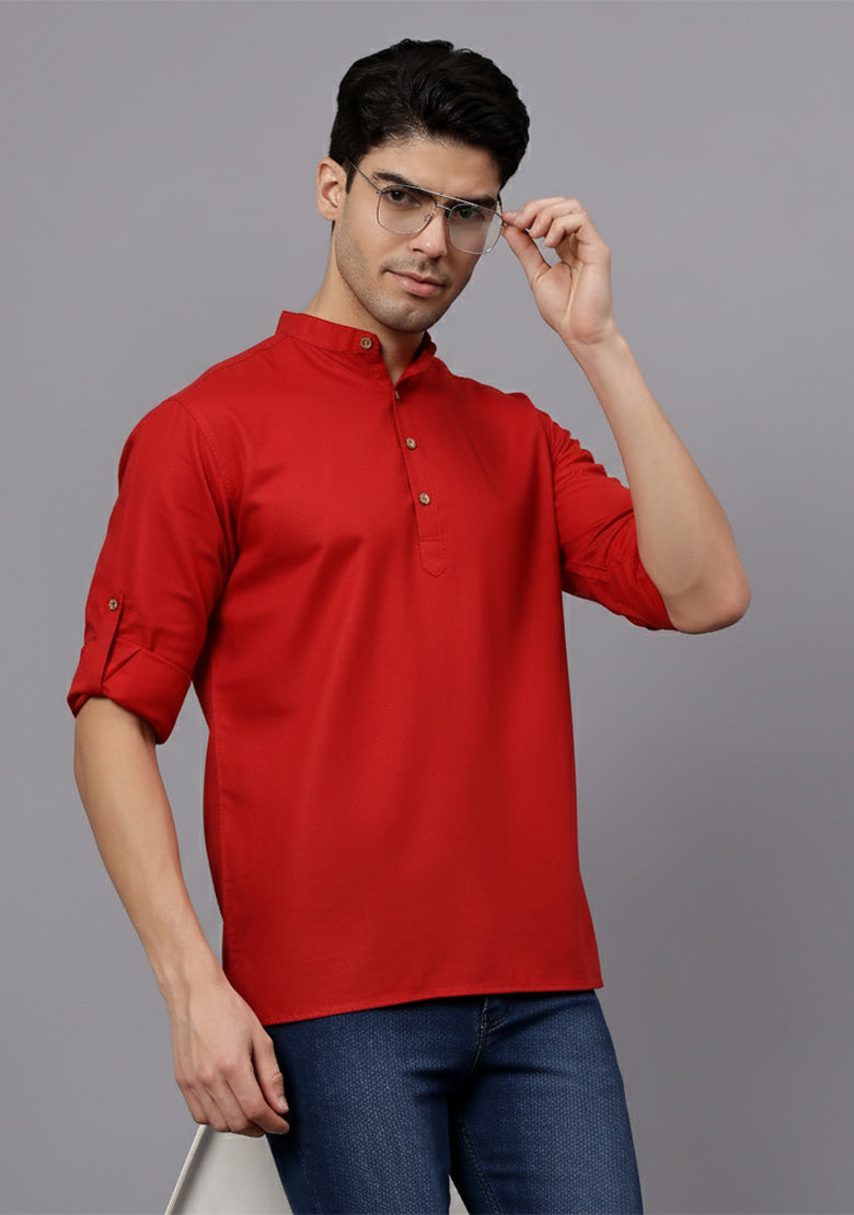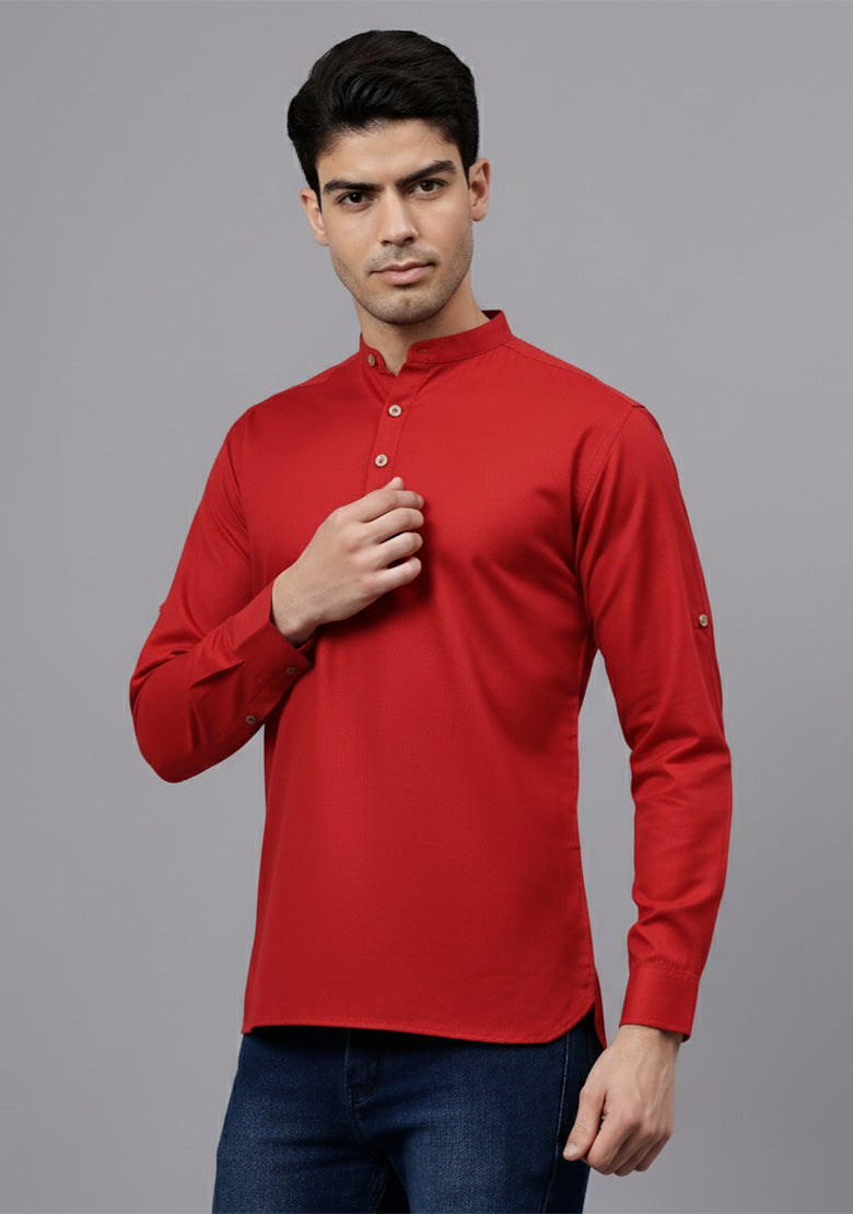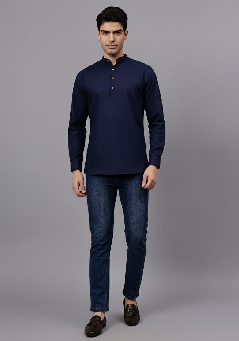 Pair this short kurta with chinos or jeans for a smart-casual look, or style it with slim-fit trousers for a semi-formal vibe. Complete your outfit with loafers, moccasins, or sneakers for a modern edge.