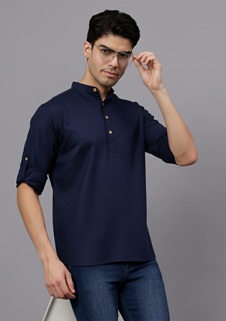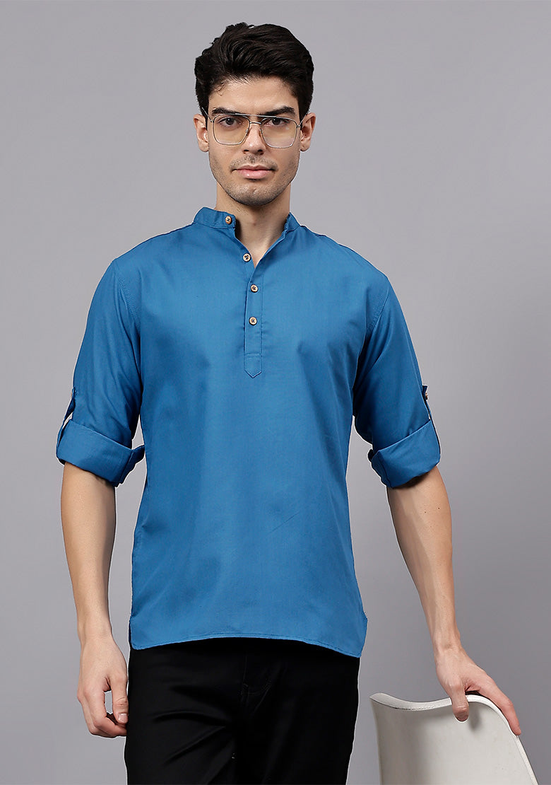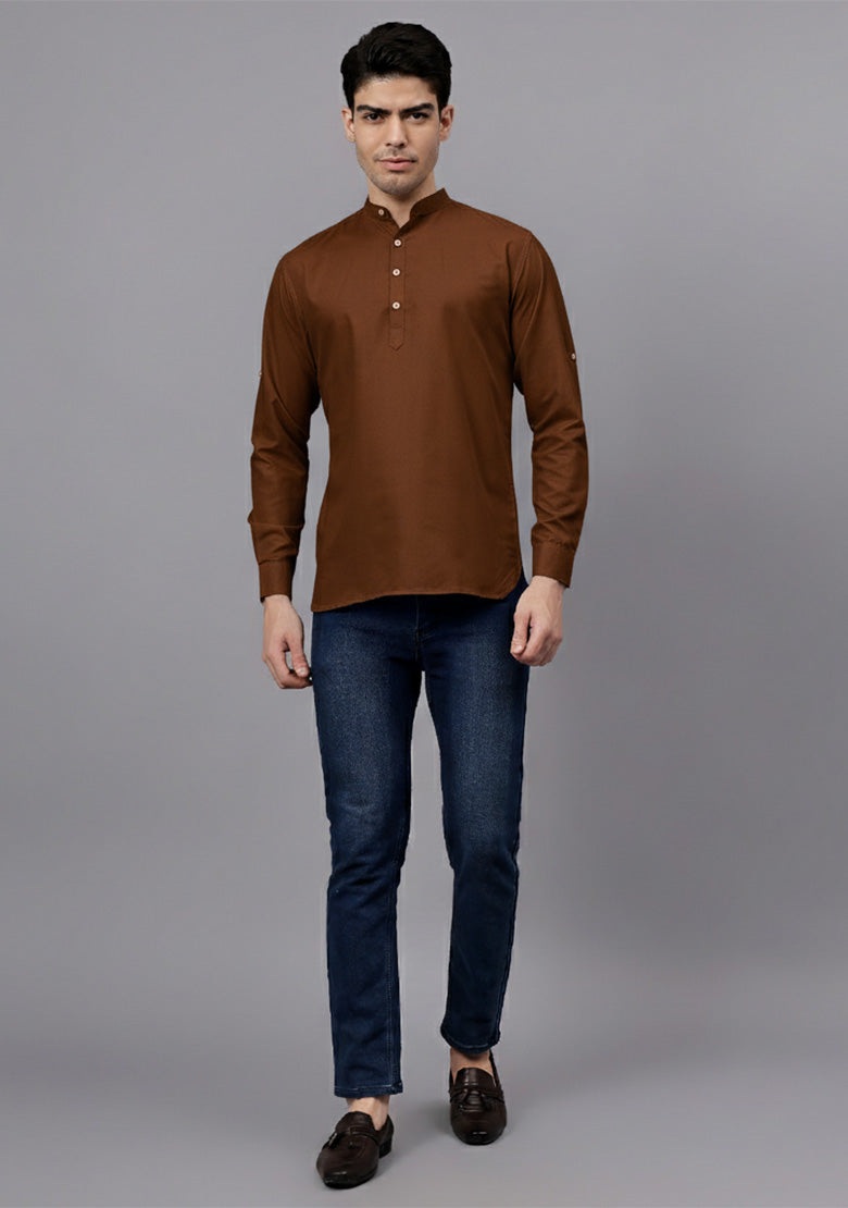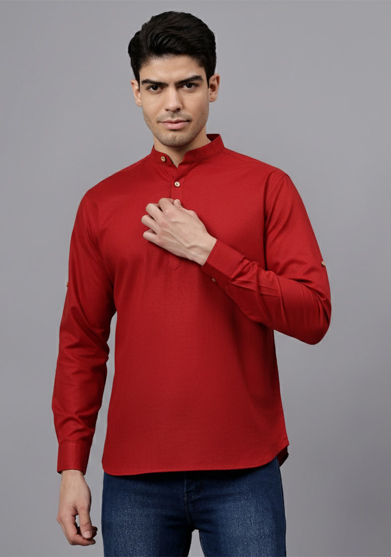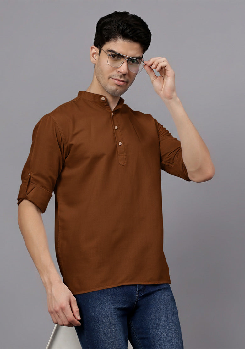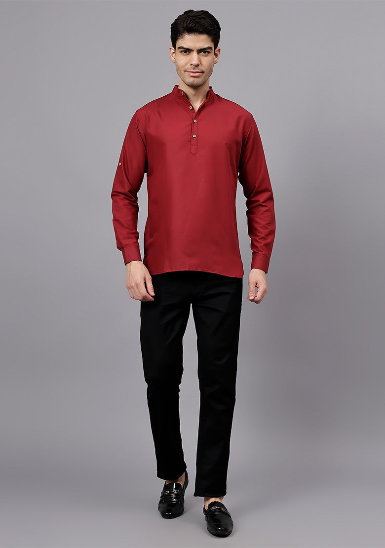 Pair this short kurta with chinos or jeans for a smart-casual look, or style it with slim-fit trousers for a semi-formal vibe. Complete your outfit with loafers, moccasins, or sneakers for a modern edge.
