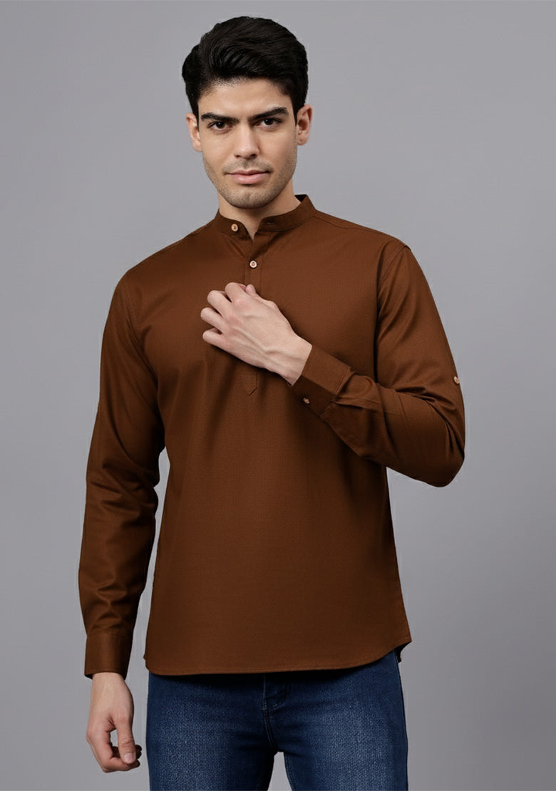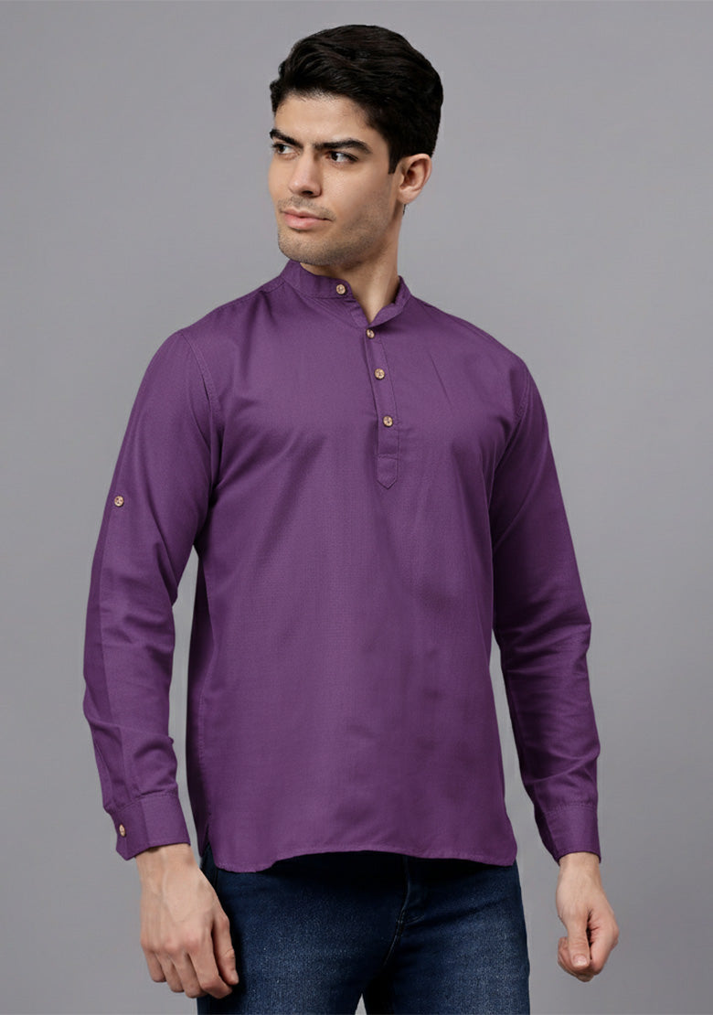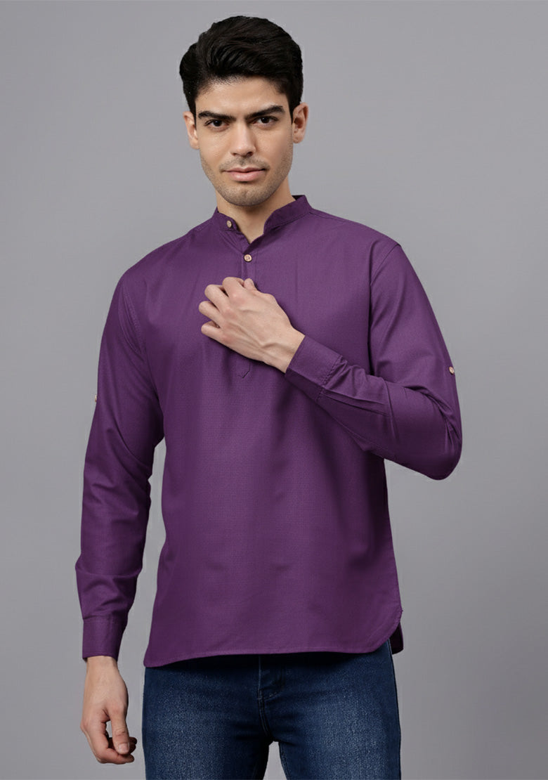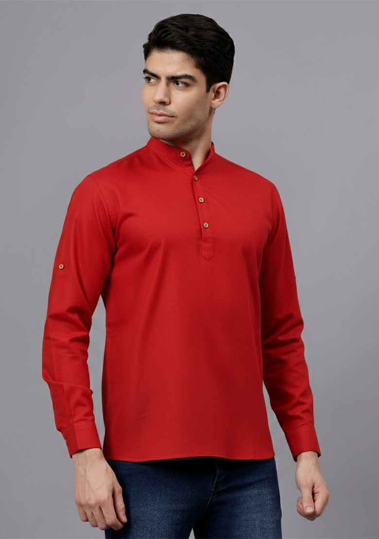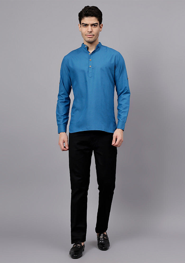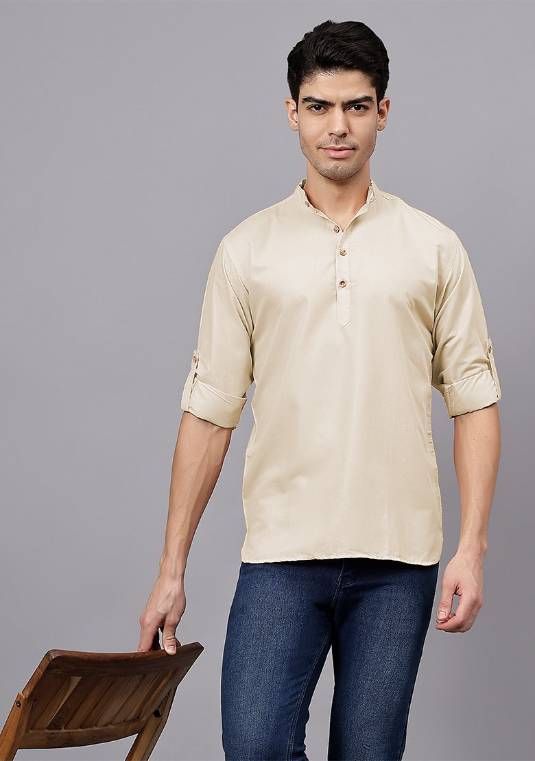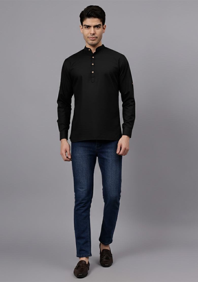 Pair this short kurta with chinos or jeans for a smart-casual look, or style it with slim-fit trousers for a semi-formal vibe. Complete your outfit with loafers, moccasins, or sneakers for a modern edge.
