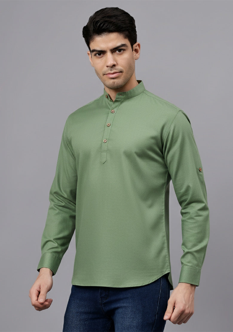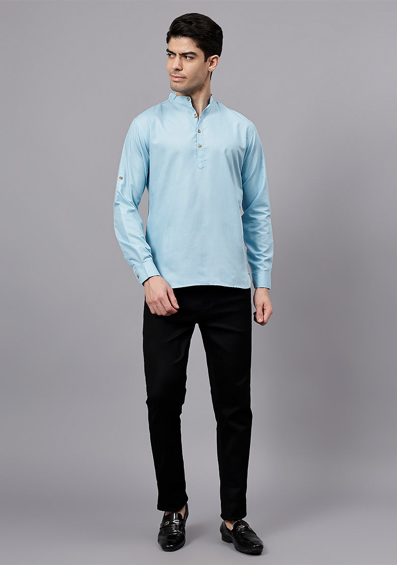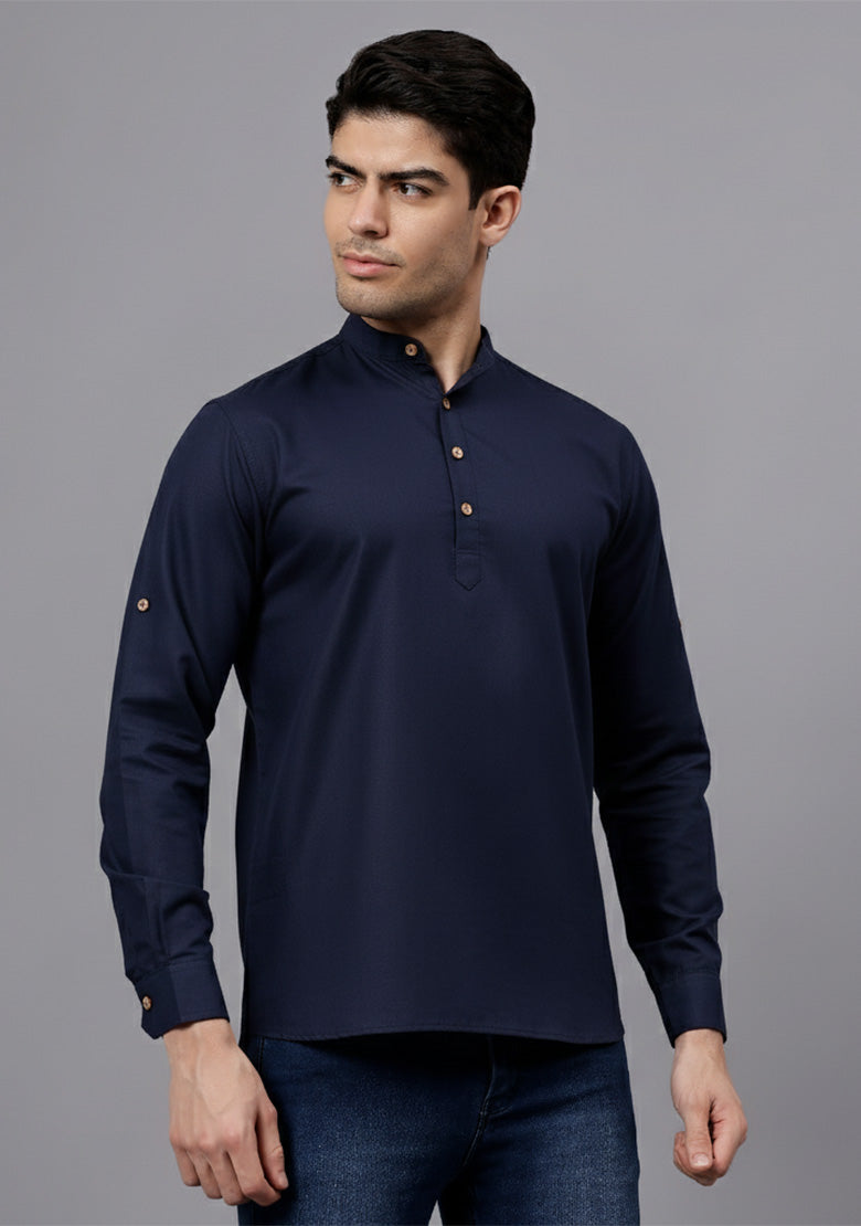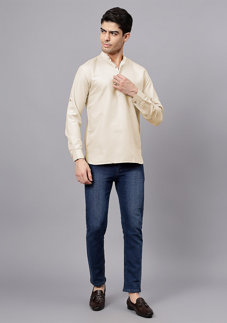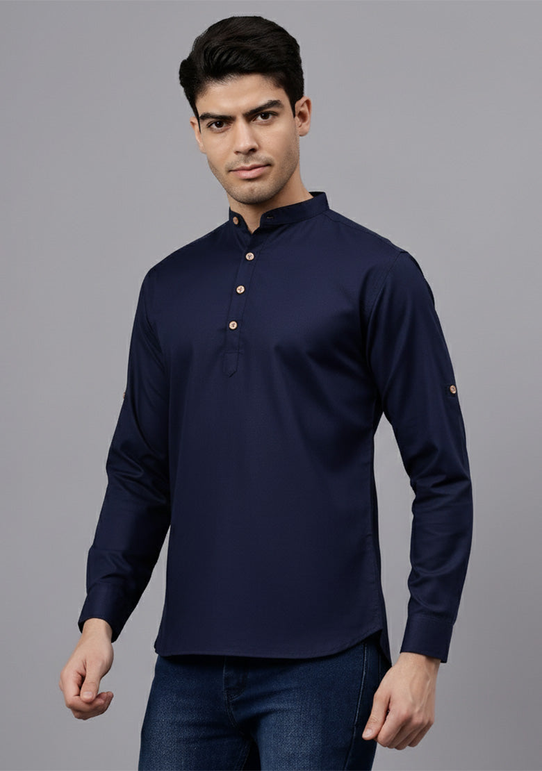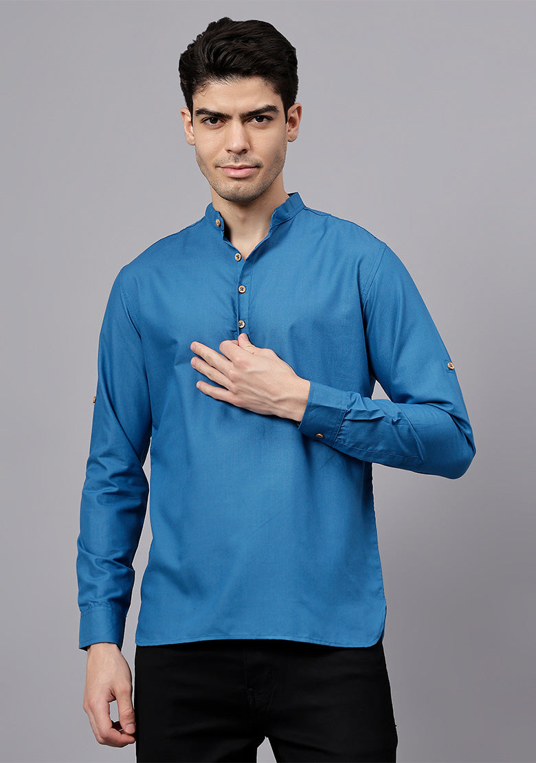 Pair this short kurta with chinos or jeans for a smart-casual look, or style it with slim-fit trousers for a semi-formal vibe. Complete your outfit with loafers, moccasins, or sneakers for a modern edge.