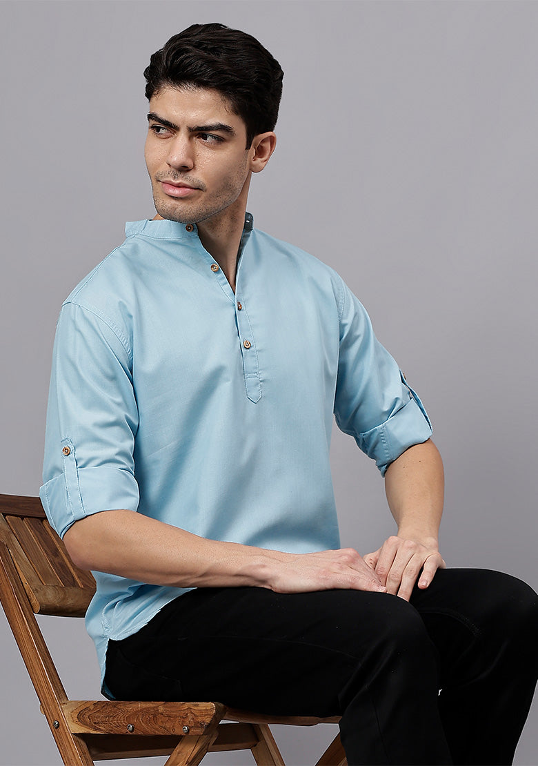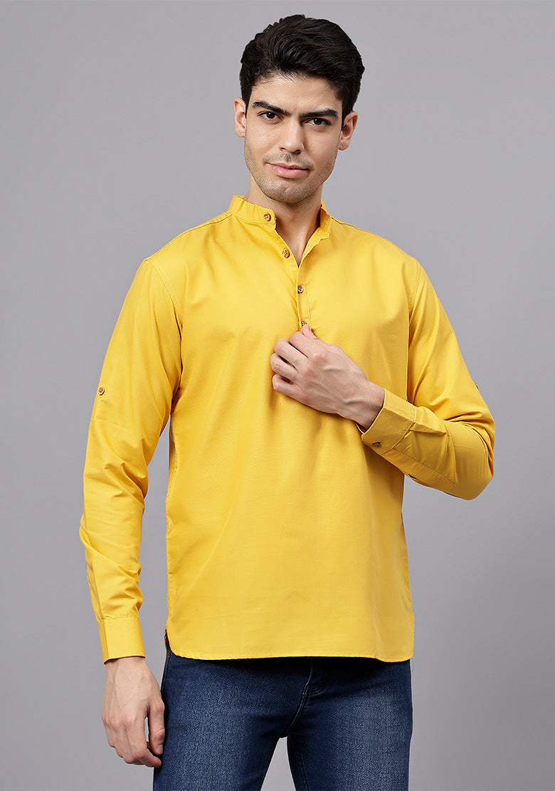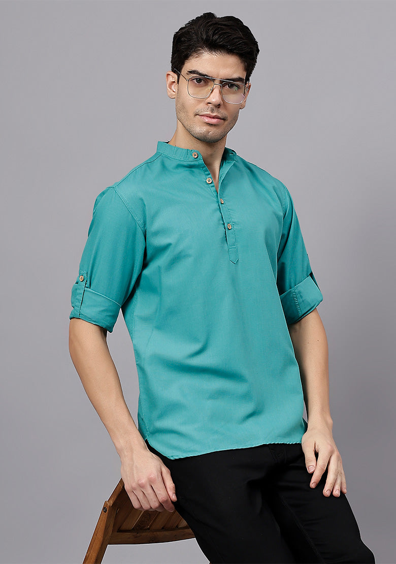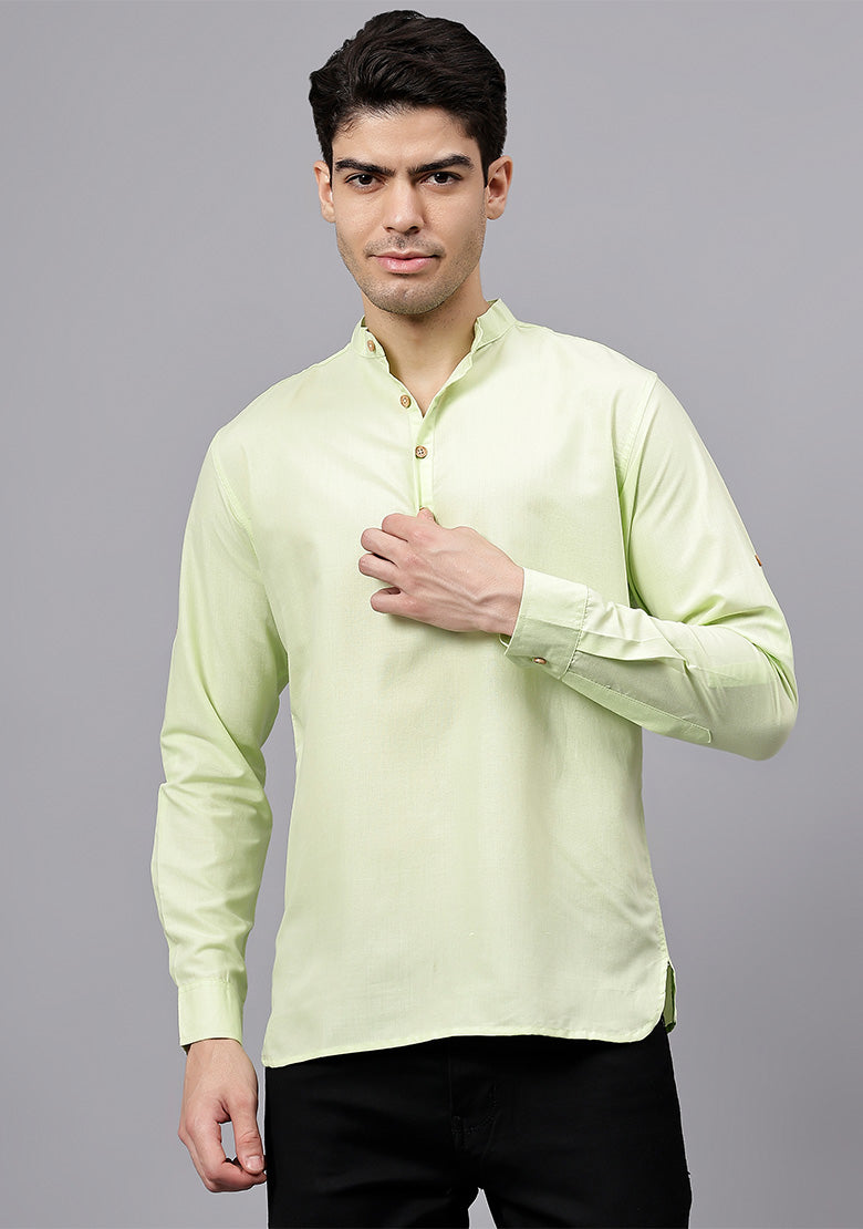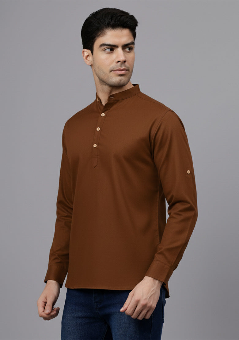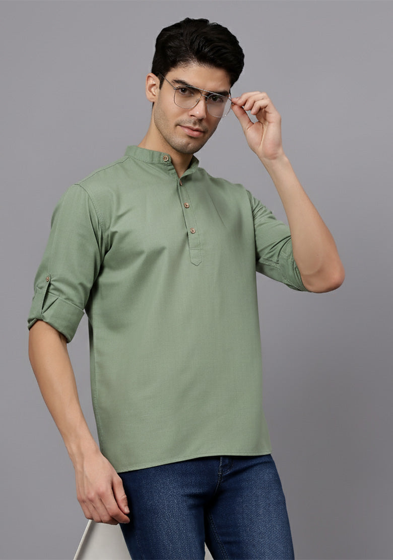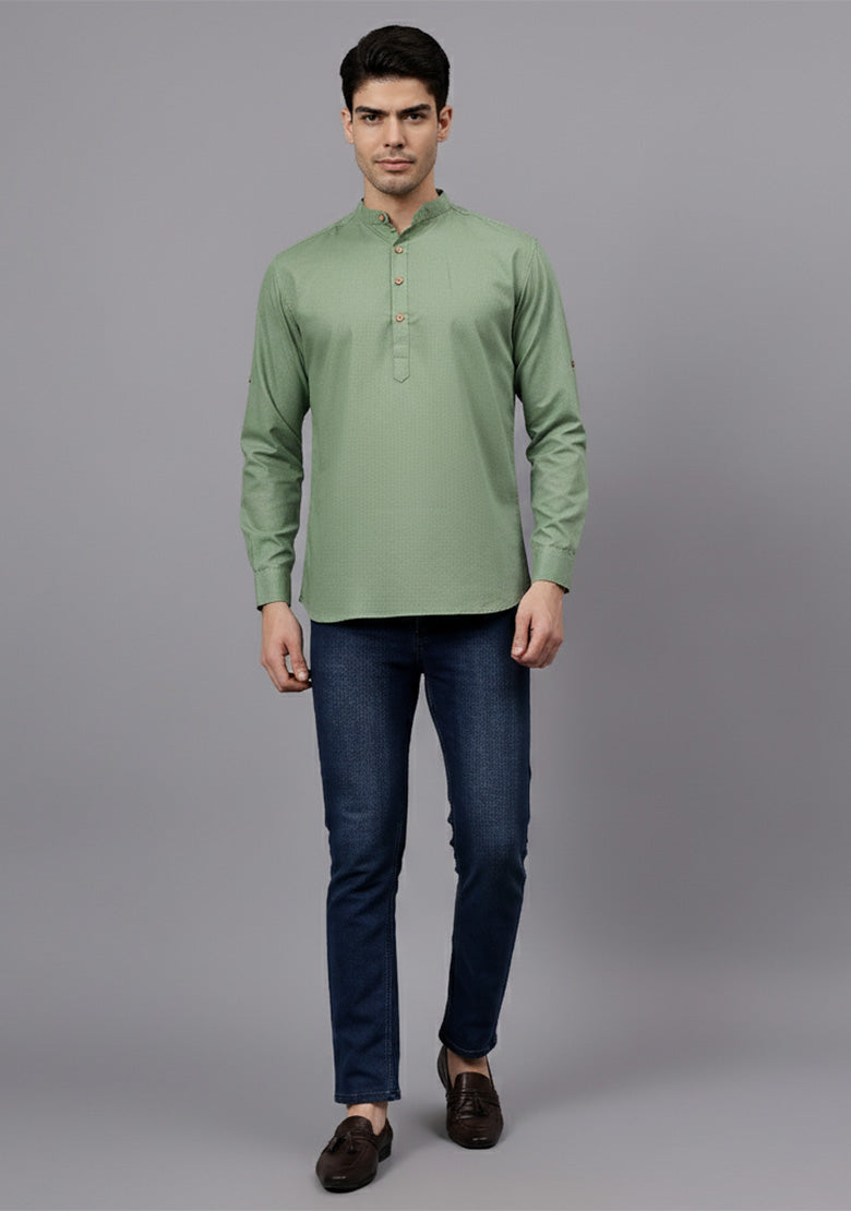 Pair this short kurta with chinos or jeans for a smart-casual look, or style it with slim-fit trousers for a semi-formal vibe. Complete your outfit with loafers, moccasins, or sneakers for a modern edge.