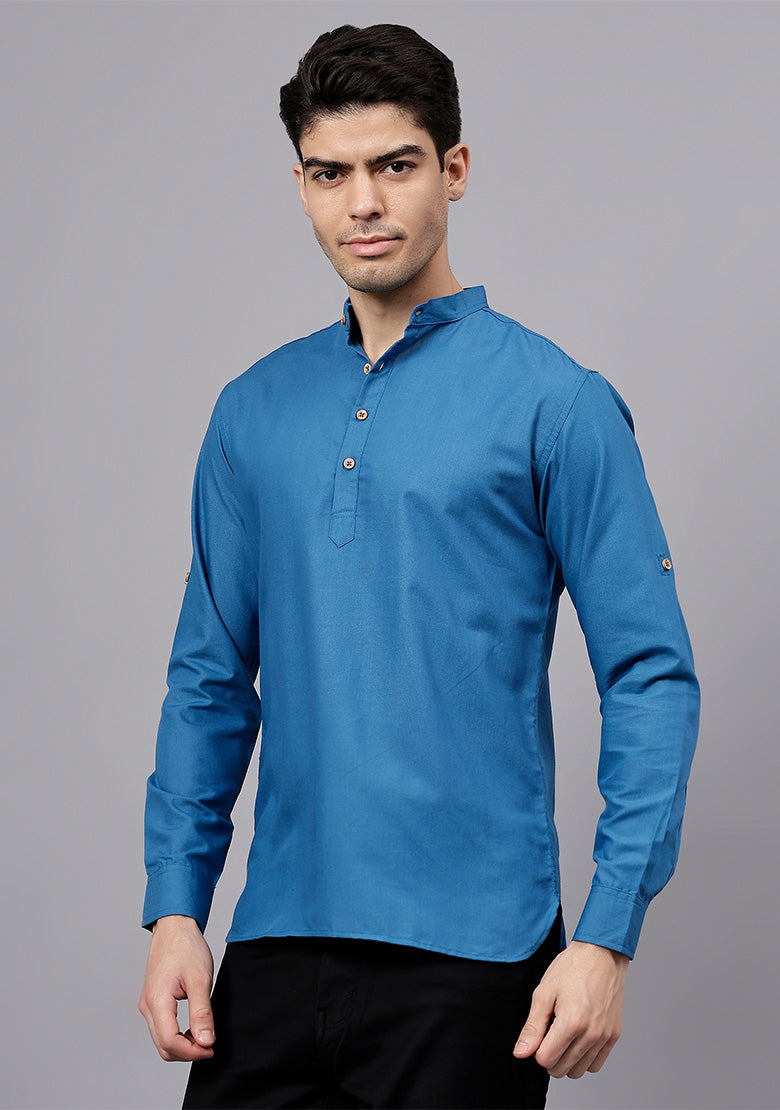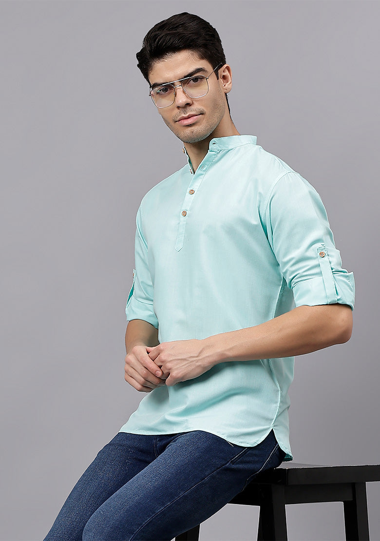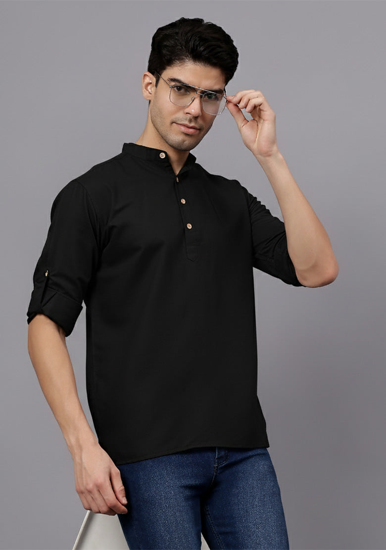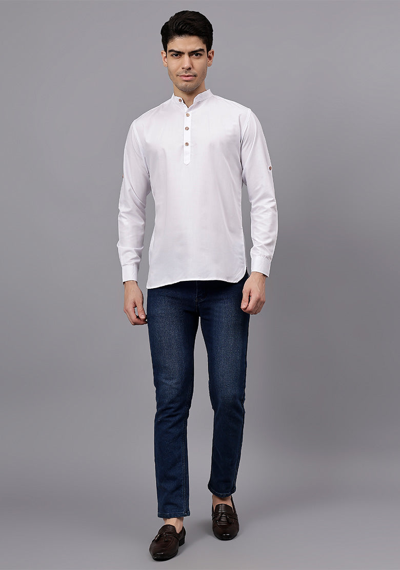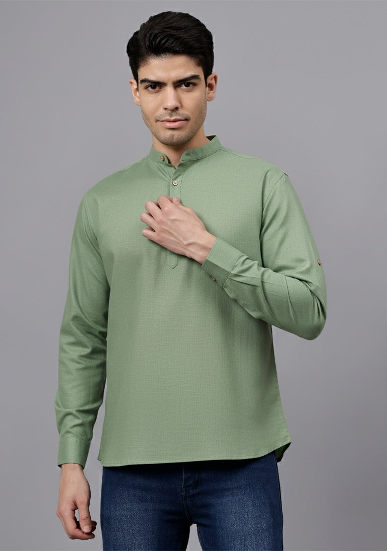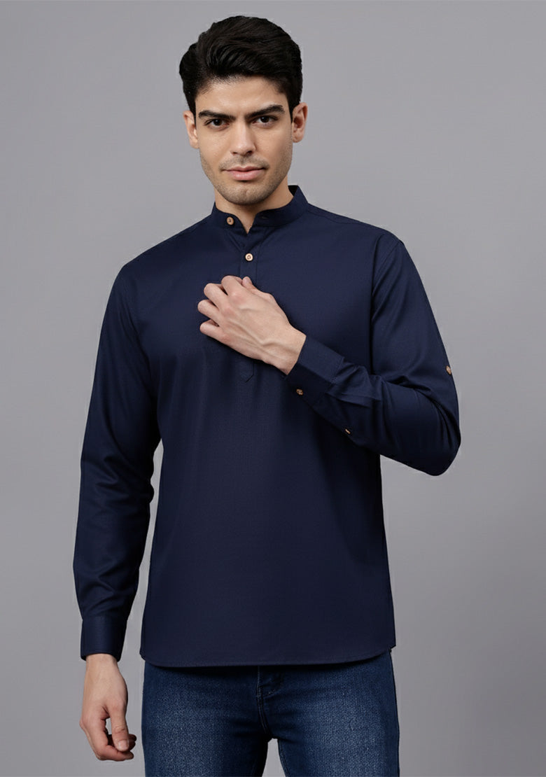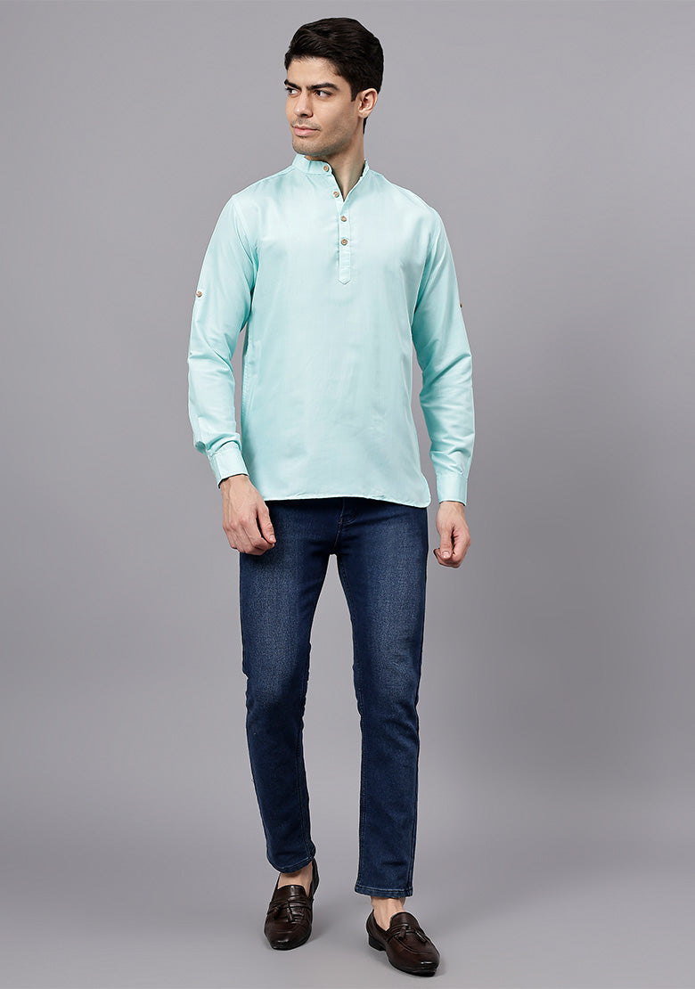 Pair this short kurta with chinos or jeans for a smart-casual look, or style it with slim-fit trousers for a semi-formal vibe. Complete your outfit with loafers, moccasins, or sneakers for a modern edge.