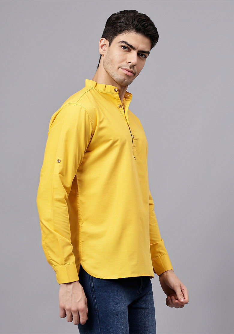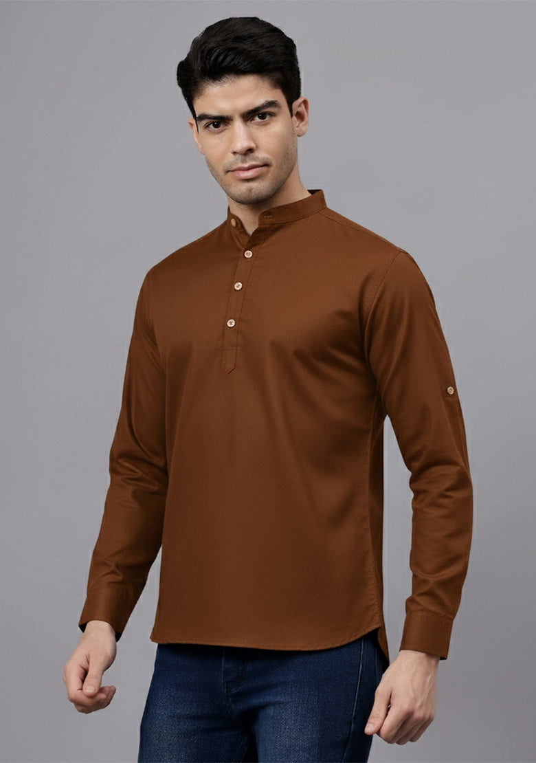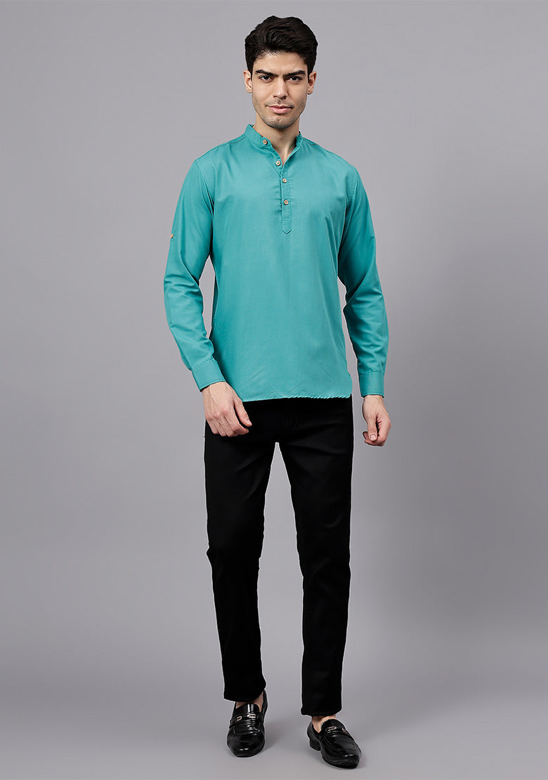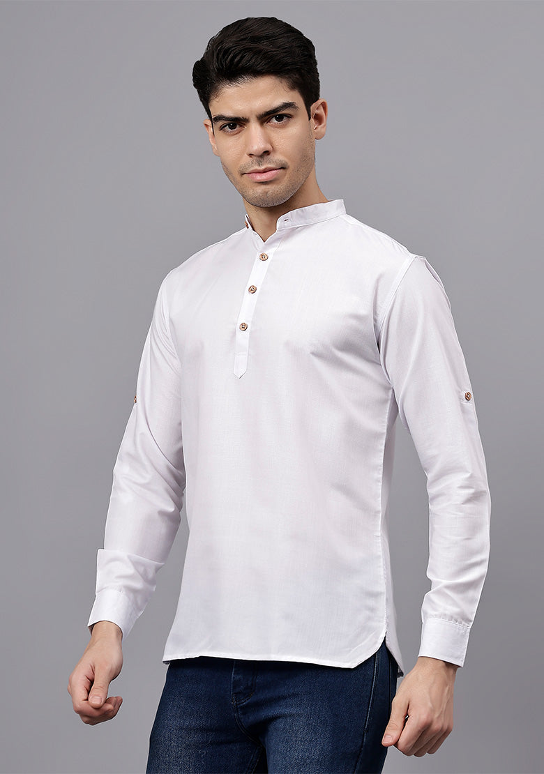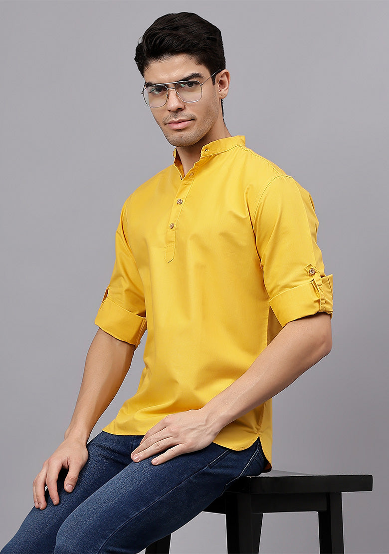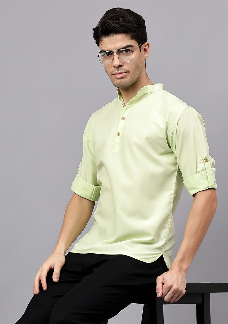 Pair this short kurta with chinos or jeans for a smart-casual look, or style it with slim-fit trousers for a semi-formal vibe. Complete your outfit with loafers, moccasins, or sneakers for a modern edge.