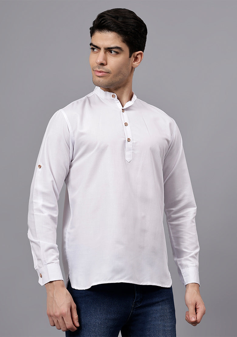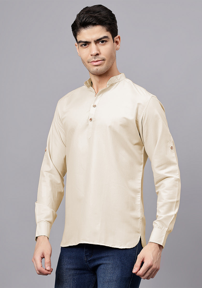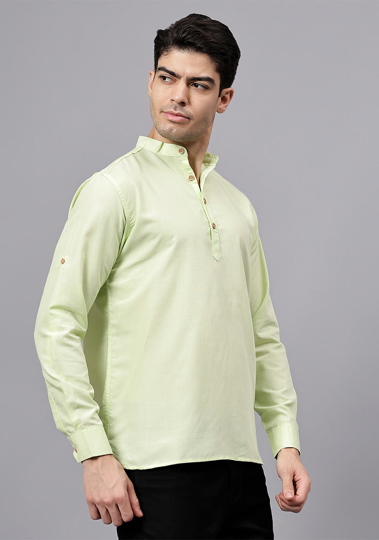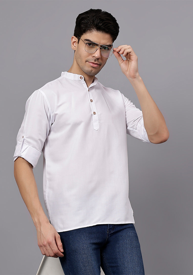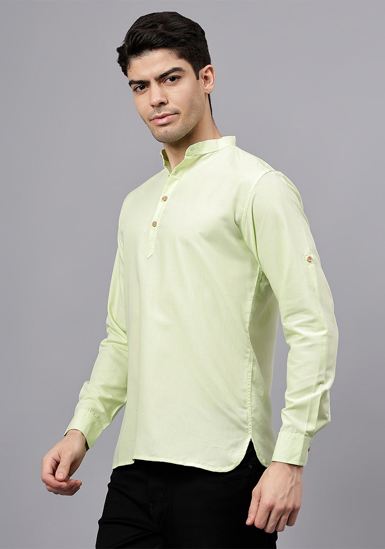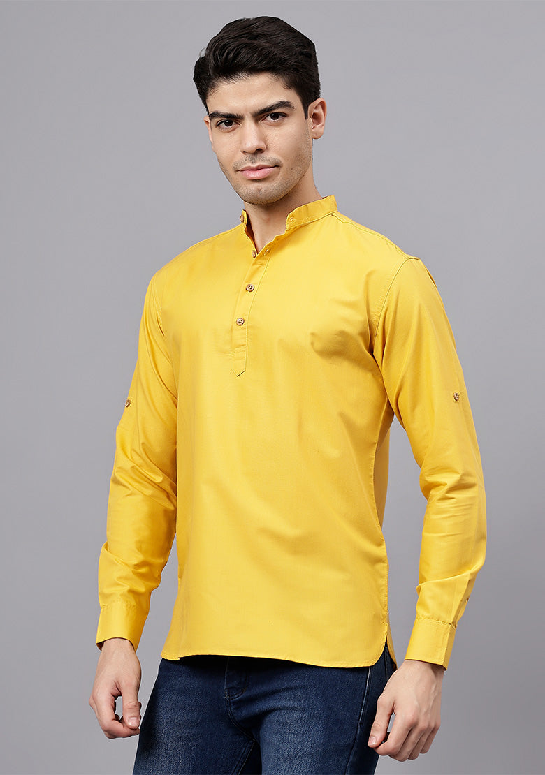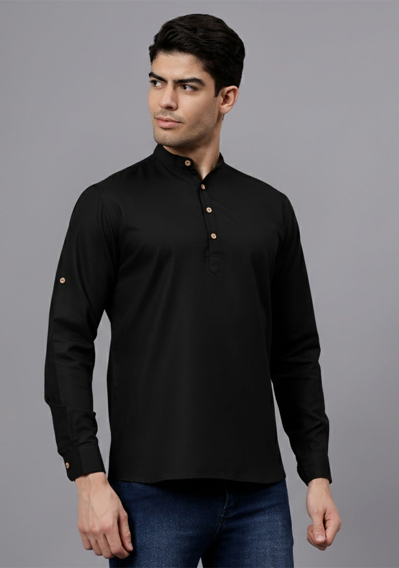 Pair this short kurta with chinos or jeans for a smart-casual look, or style it with slim-fit trousers for a semi-formal vibe. Complete your outfit with loafers, moccasins, or sneakers for a modern edge.