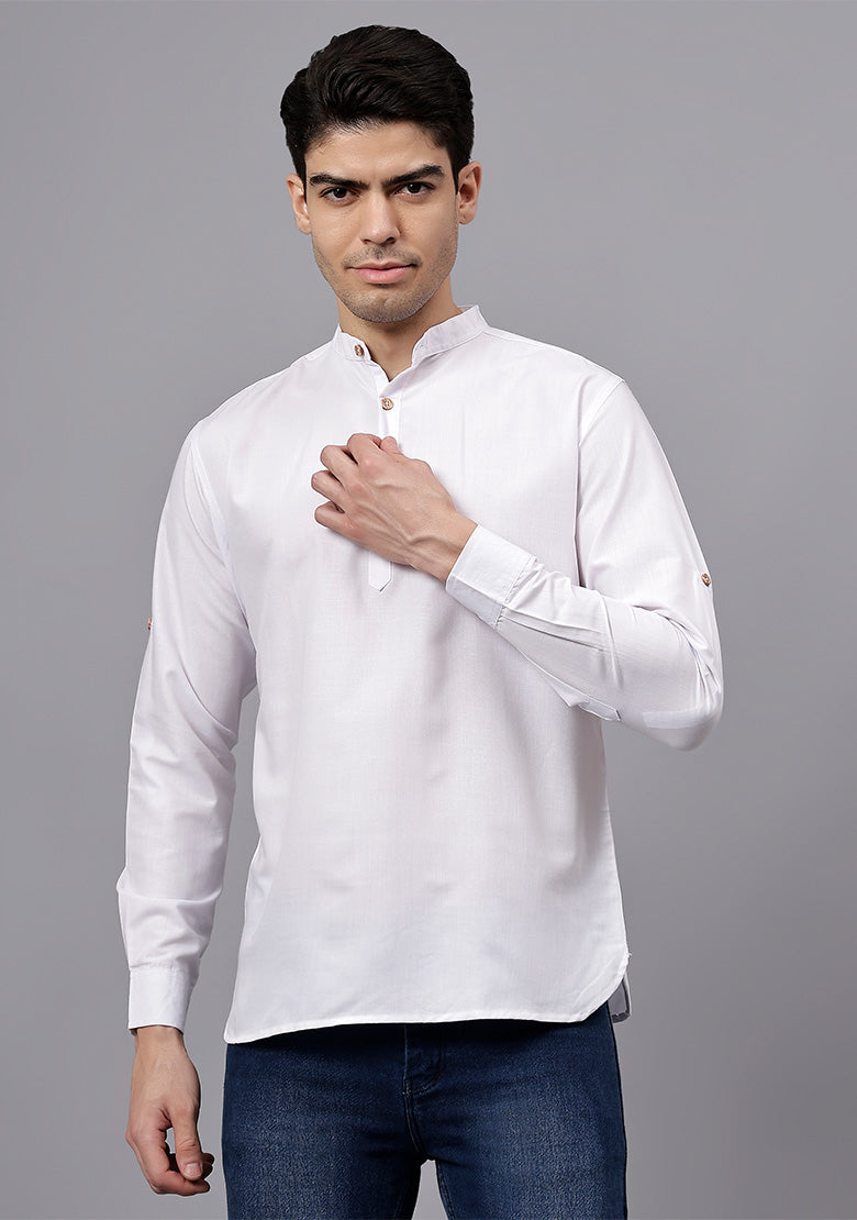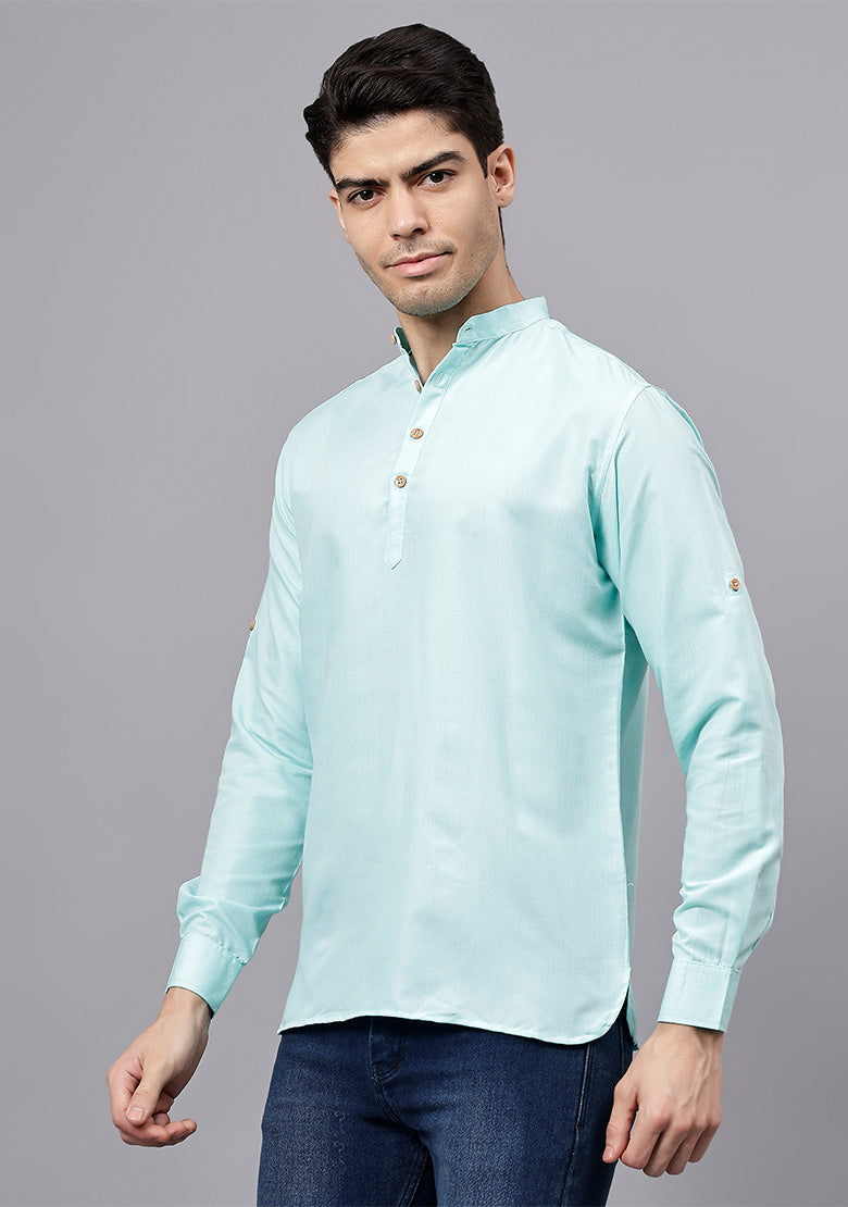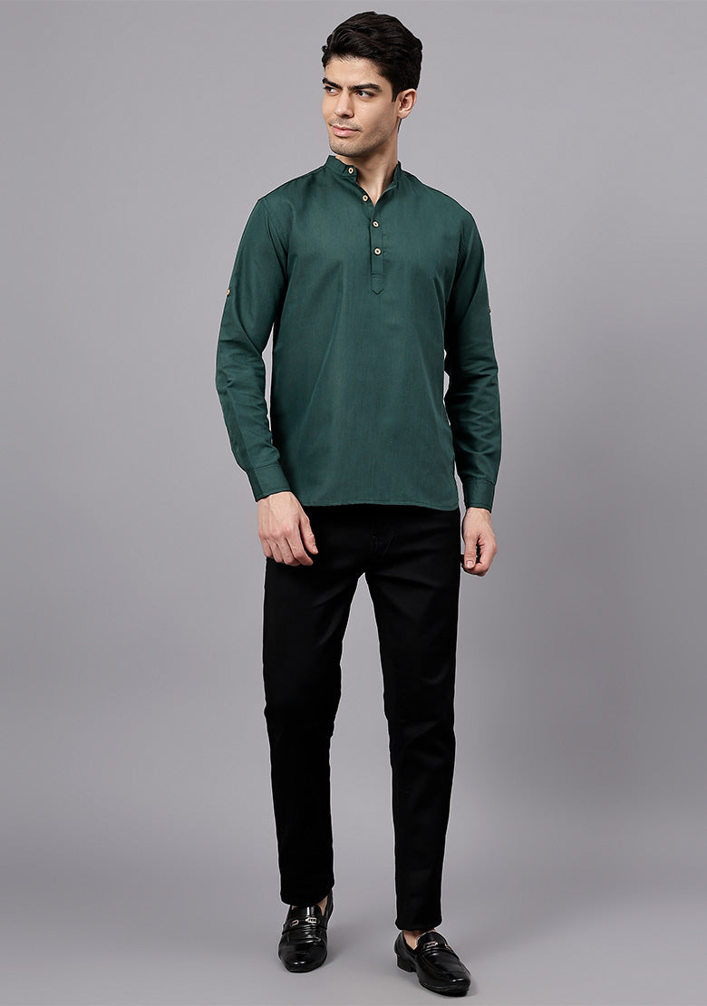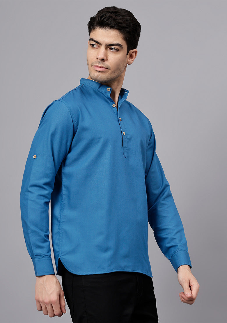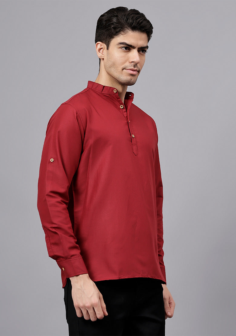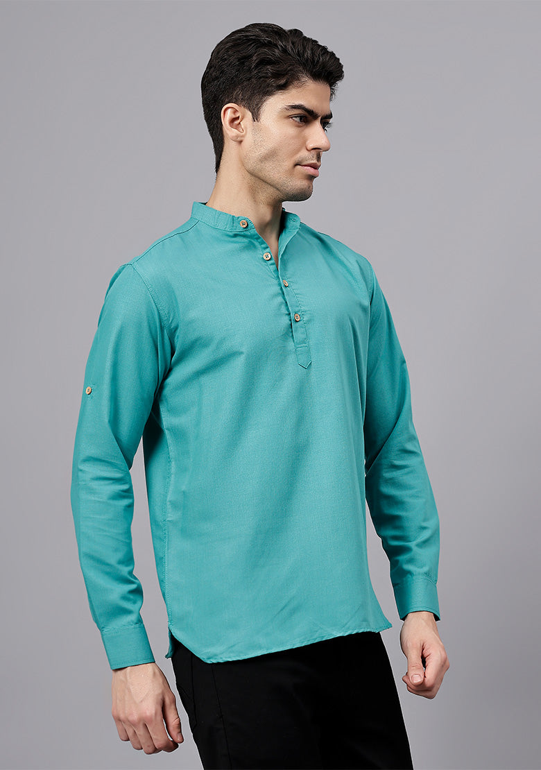 Pair this short kurta with chinos or jeans for a smart-casual look, or style it with slim-fit trousers for a semi-formal vibe. Complete your outfit with loafers, moccasins, or sneakers for a modern edge.