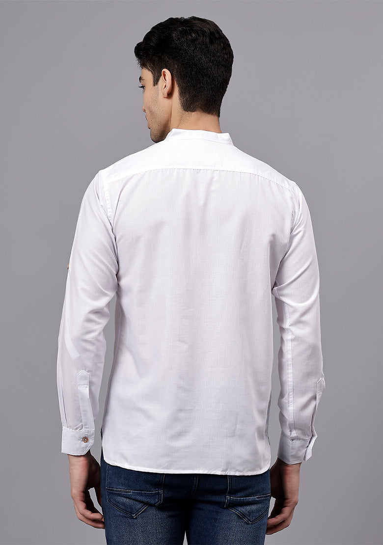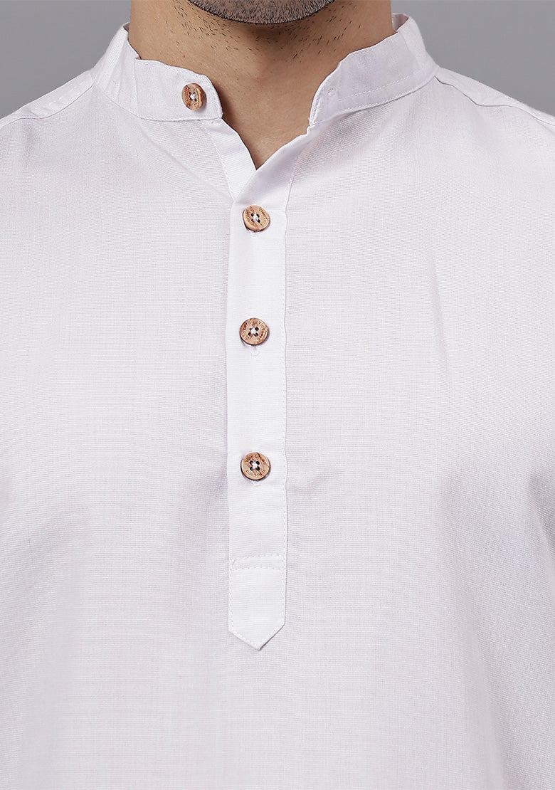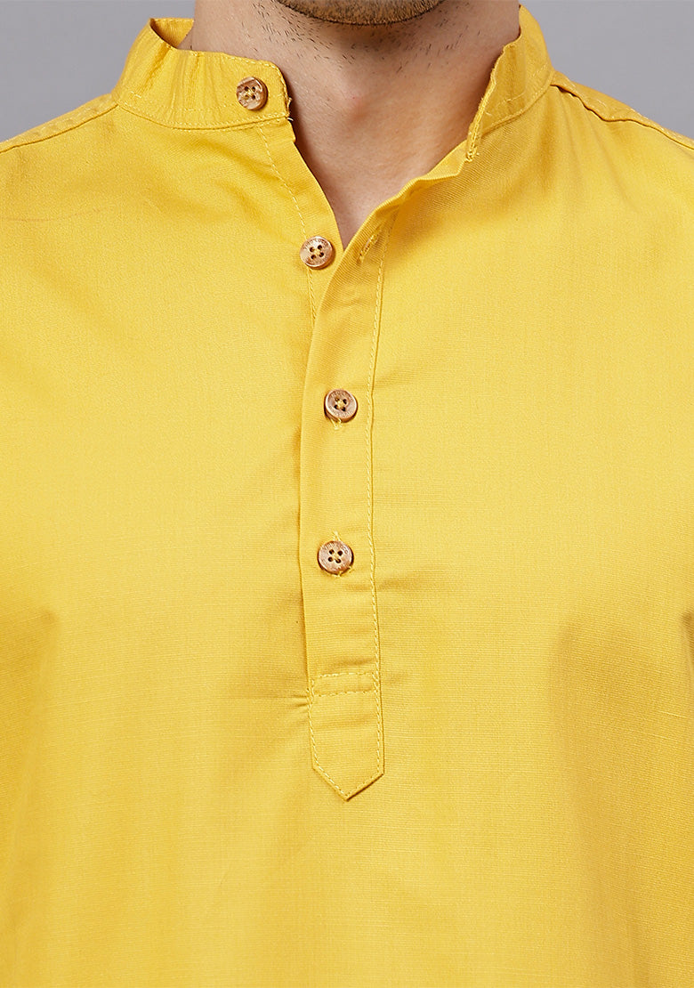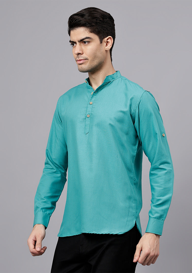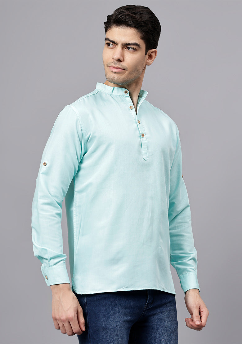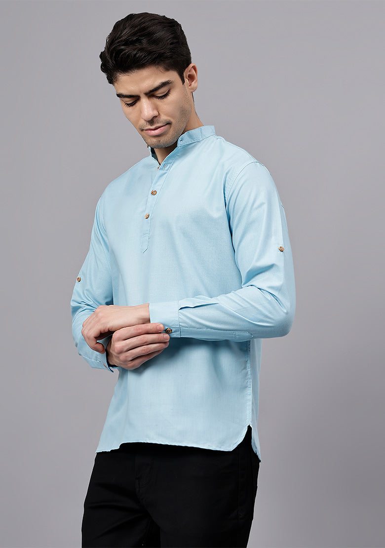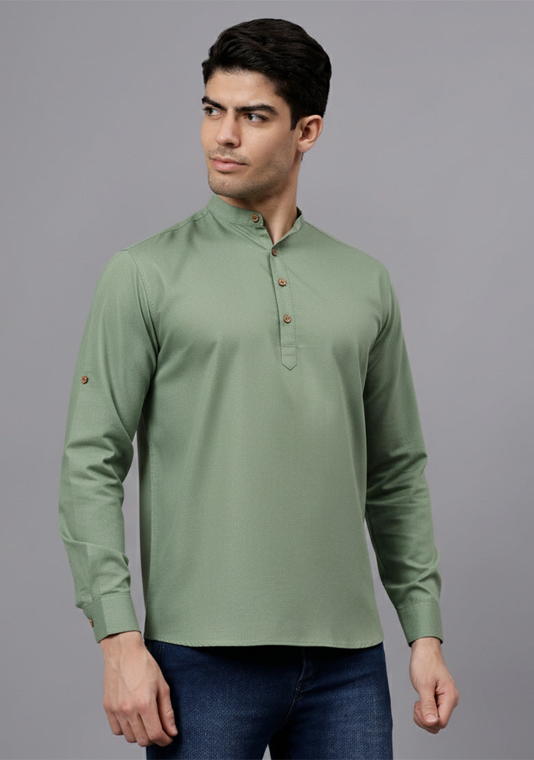 Pair this short kurta with chinos or jeans for a smart-casual look, or style it with slim-fit trousers for a semi-formal vibe. Complete your outfit with loafers, moccasins, or sneakers for a modern edge.