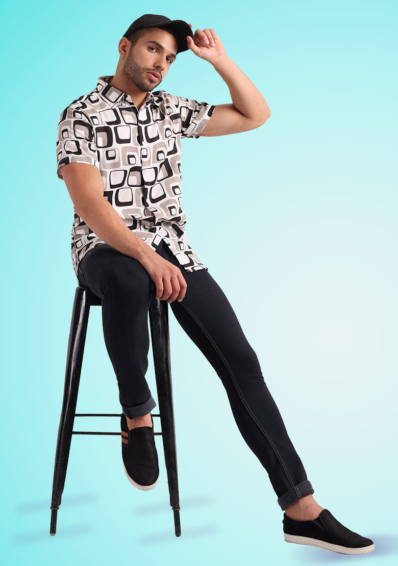 Introducing the all-new LENIA Printed Button-Up Shirt in classic Grey! Experience the perfect blend of style and comfort with this exquisite shirt. Here are the key details: