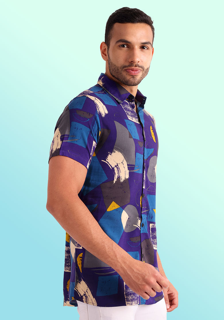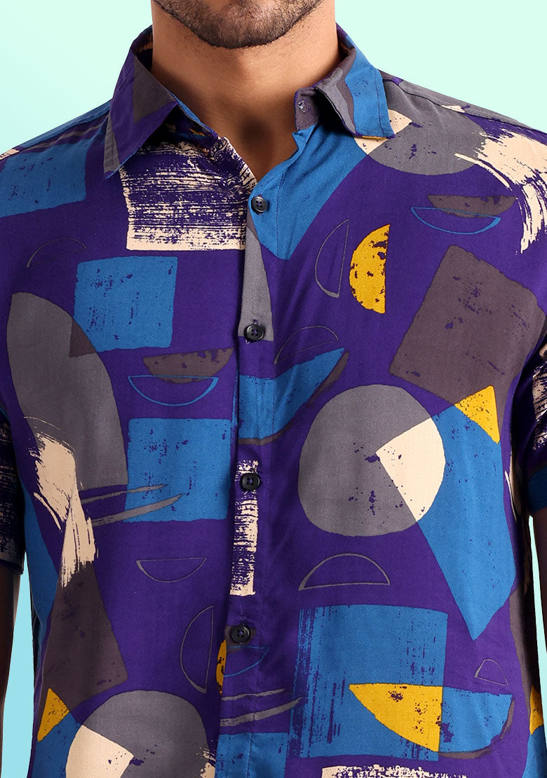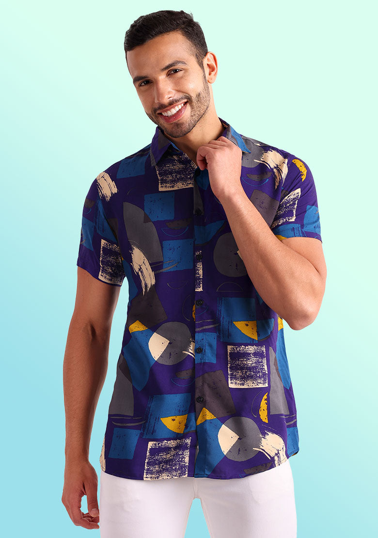 Introducing our "Shape Player" shirt, perfect for those who want to add a touch of fun to their wardrobe. This regular-fit shirt features a vibrant multi-colored pattern with unique shapes printed all over it, making it a standout piece in any casual outfit.