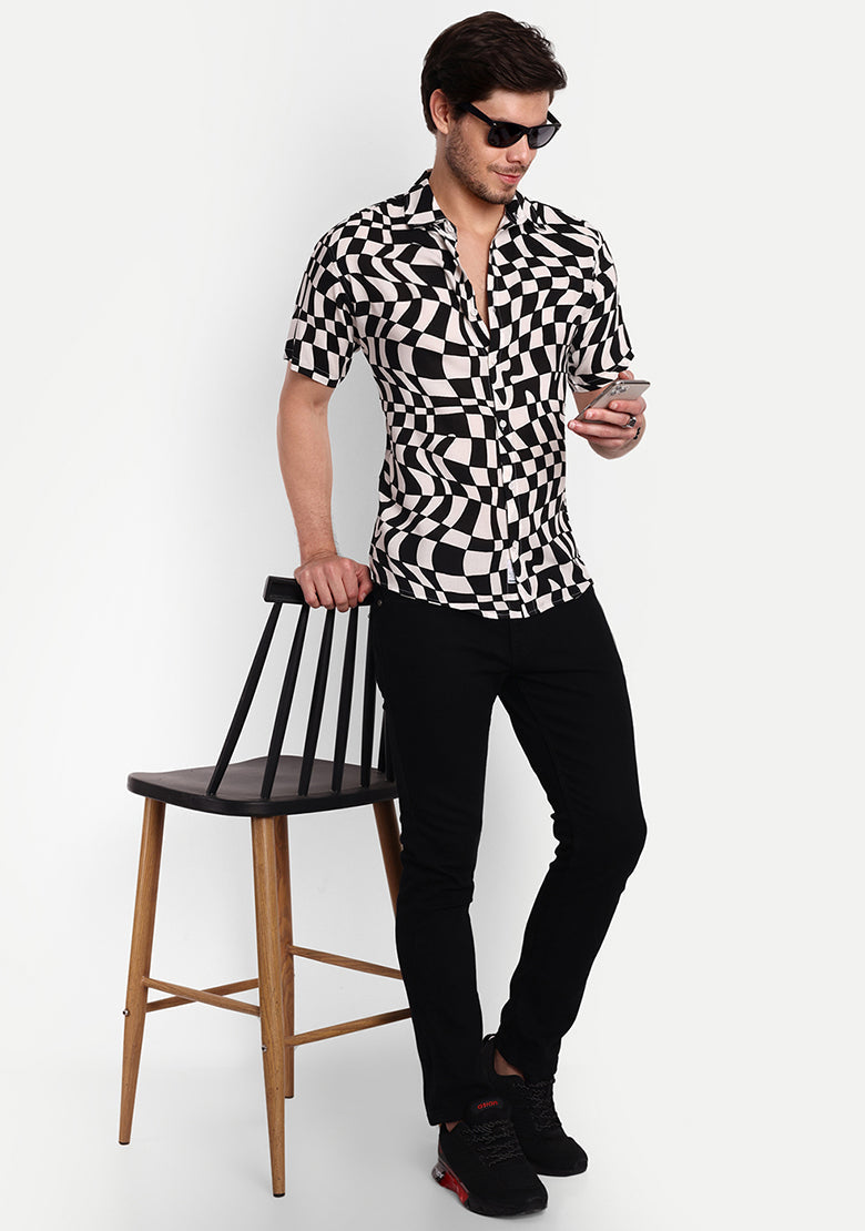 🎲 Chess Board Block Print: Stand out with the captivating Chess Board Block pattern that adds a touch of sophistication to your look. The Black color adds to the timeless charm of this shirt, making it a versatile addition to your wardrobe. ♟️🖤