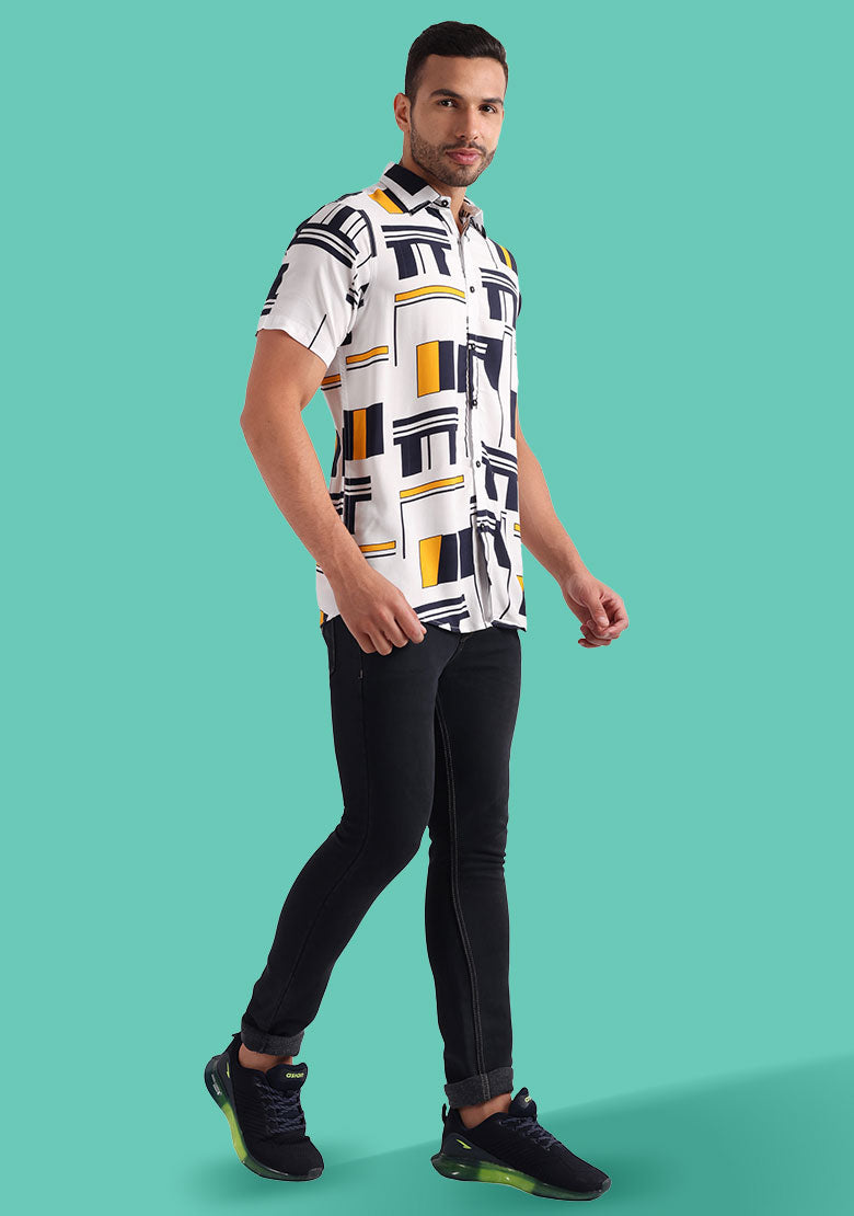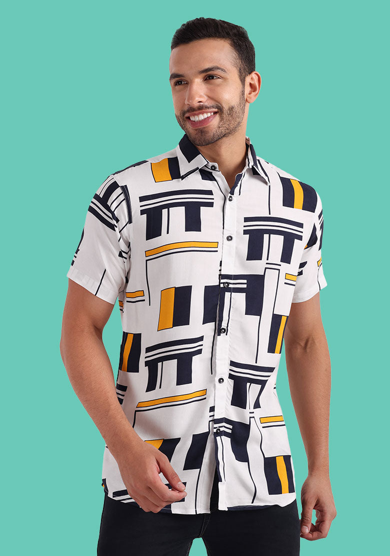 Introducing the all-new LENIA Printed Button-Up Shirt in classic Yellow! Experience the perfect blend of style and comfort with this exquisite shirt. Here are the key details: